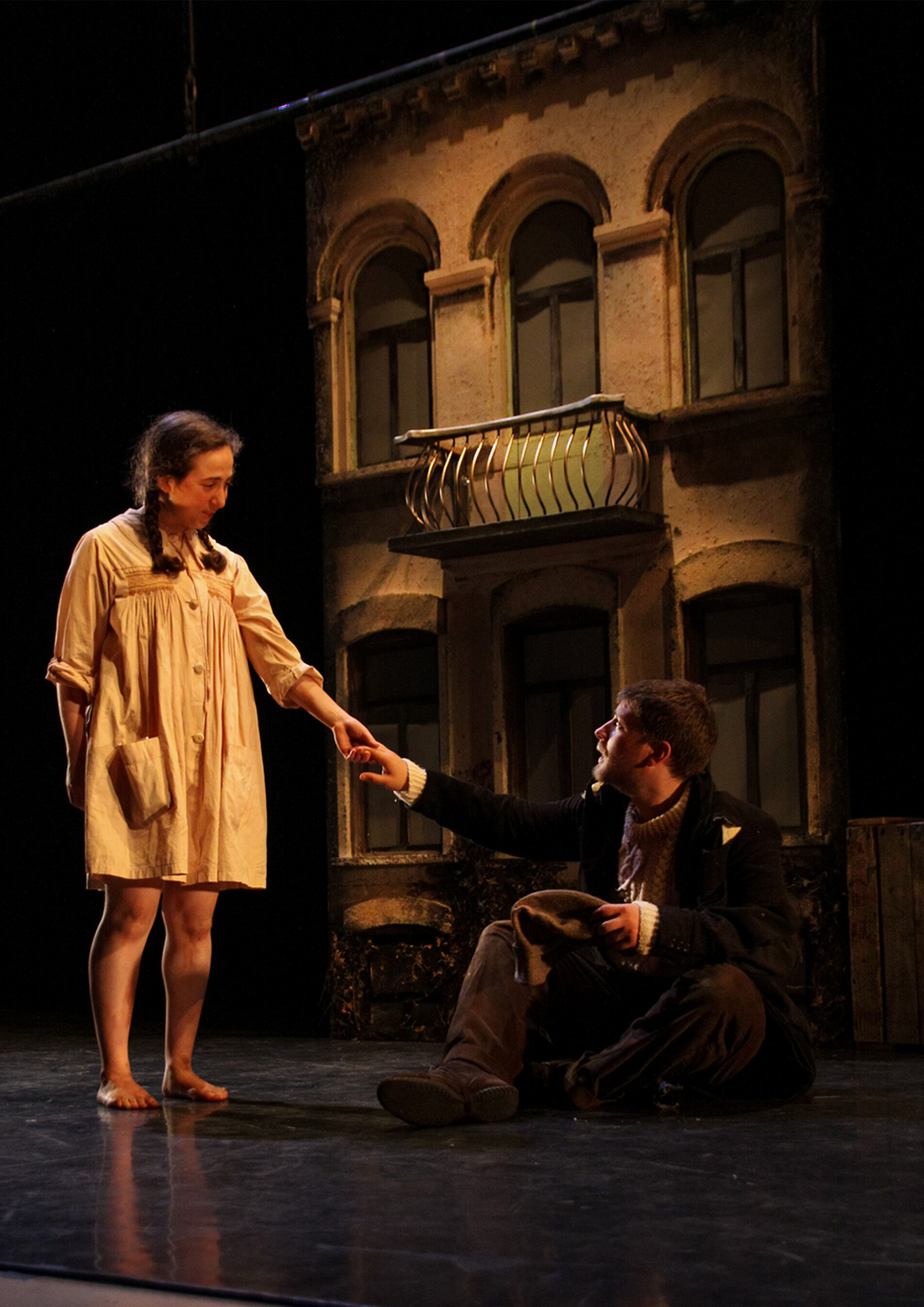 Set in 1930s Poland, a striking Polish house facade boasting three floors showed the strict class divide, whilst aged factory crates represented the industrialised world within the Soviet Union, and were utilised through skilful movement direction and physical theatre.