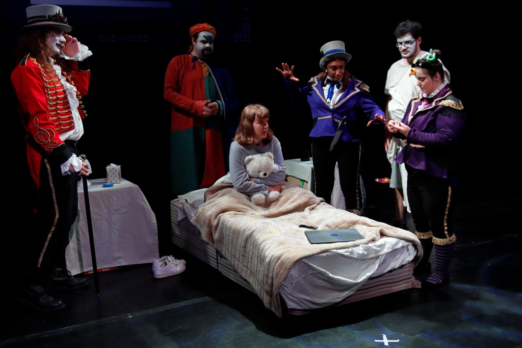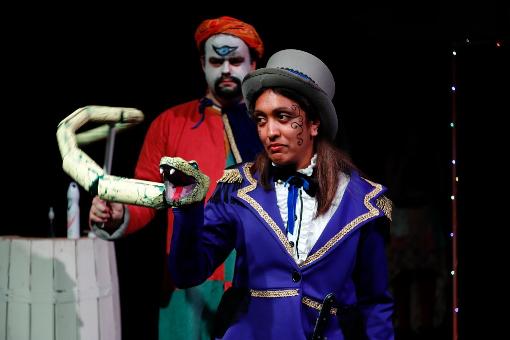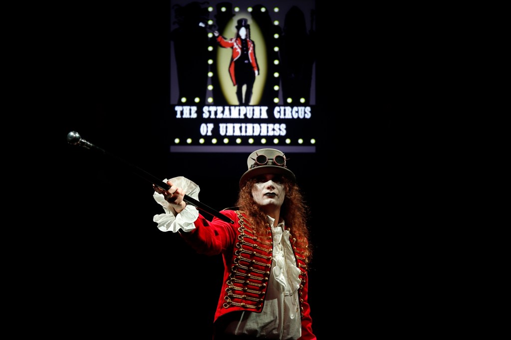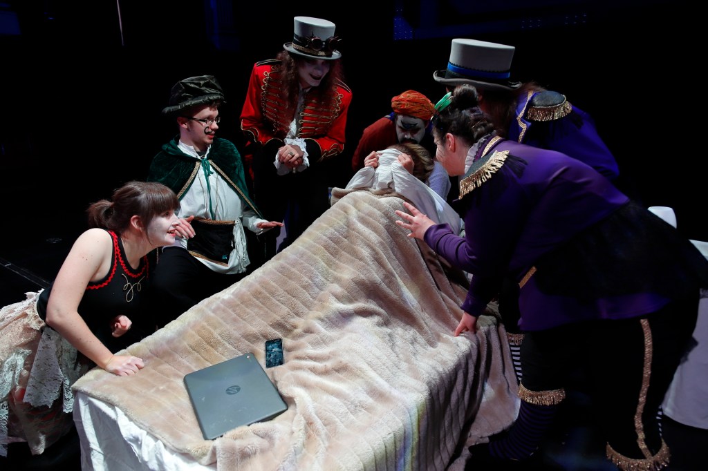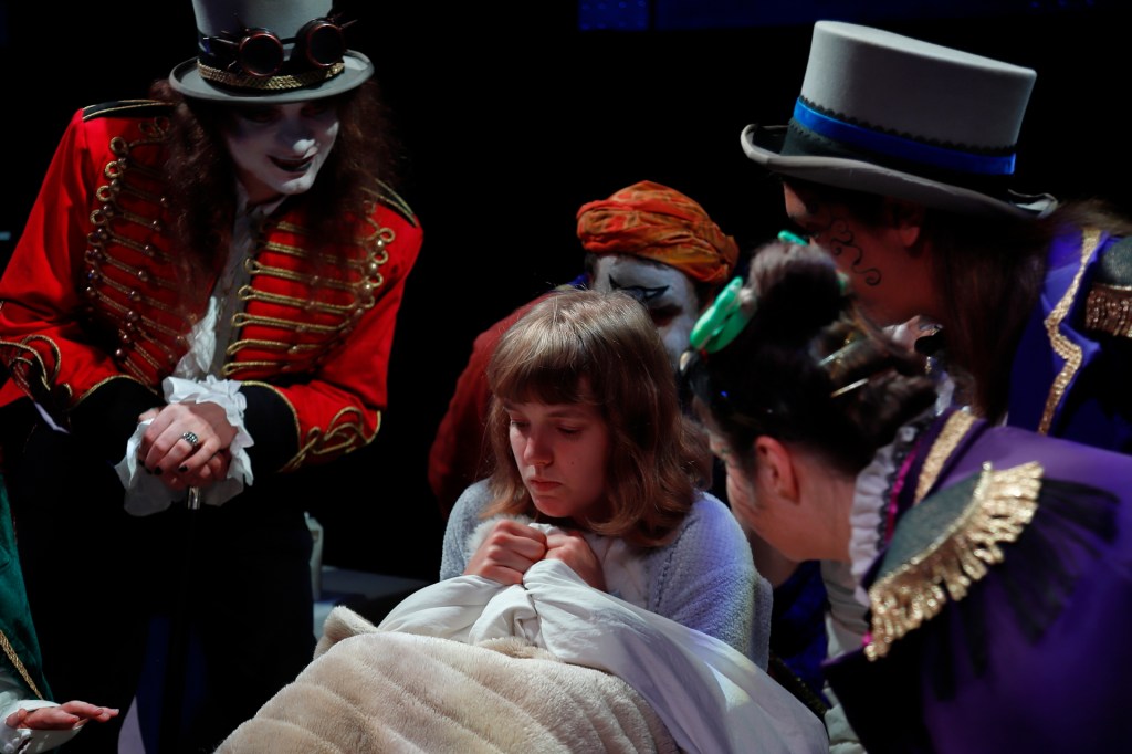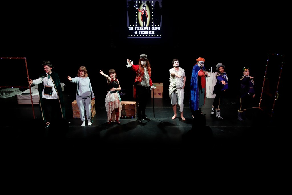 Square Peg’s arts bold ensemble wears costumes featuring all the embellishments and trimming of the circus with a dark, sinister undertone.